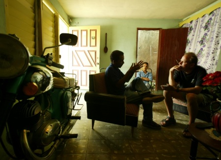 Tracey Eaton interviewing a man in Baracoa, Cuba. Posted with permission of Eaton.